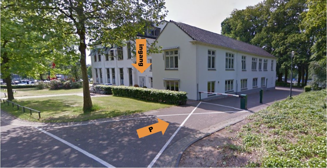 Aan de achterzijde is een parkeerplaats. Als die vol is, kun je ook langs de Dennenlaan parkeren.